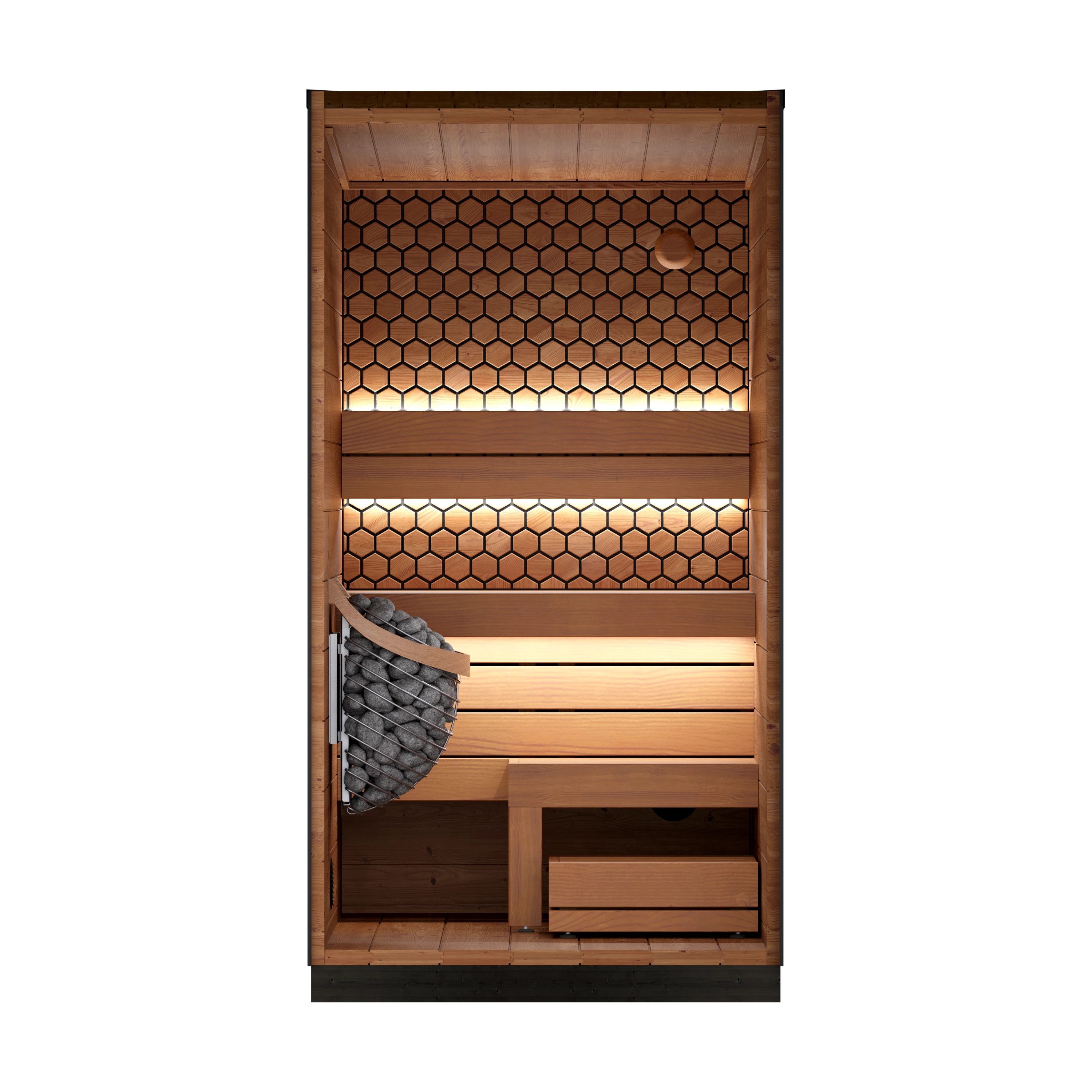 - ThermoWood® structure: 40 mm exterior walls and ceiling engineered for outdoor durability