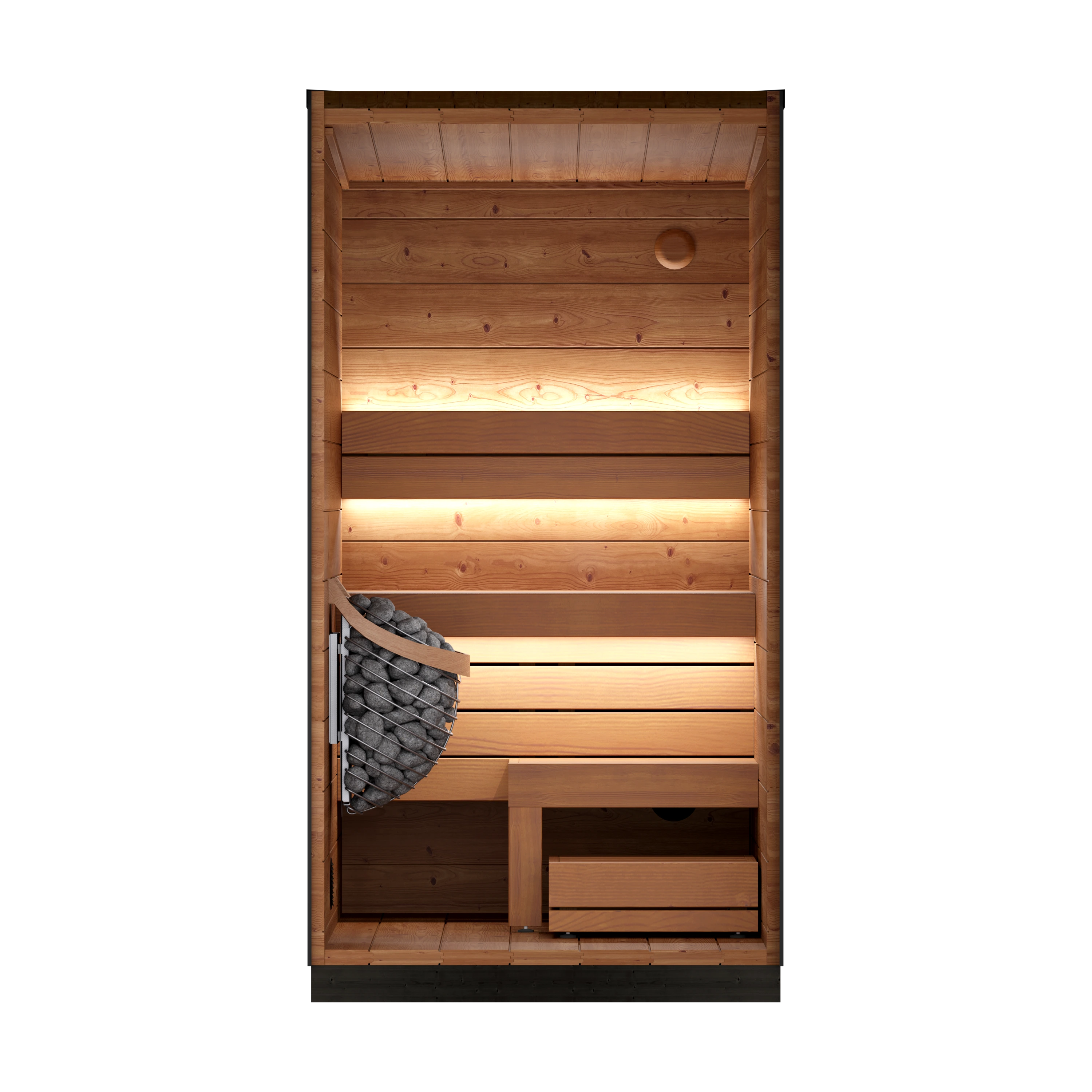 The Leil® Viva 120 is our most compact outdoor sauna, designed for one person and perfect for a private corner, balcony, or terrace. It takes minimal space while still delivering a full, authentic leil experience whenever you need a quiet reset.