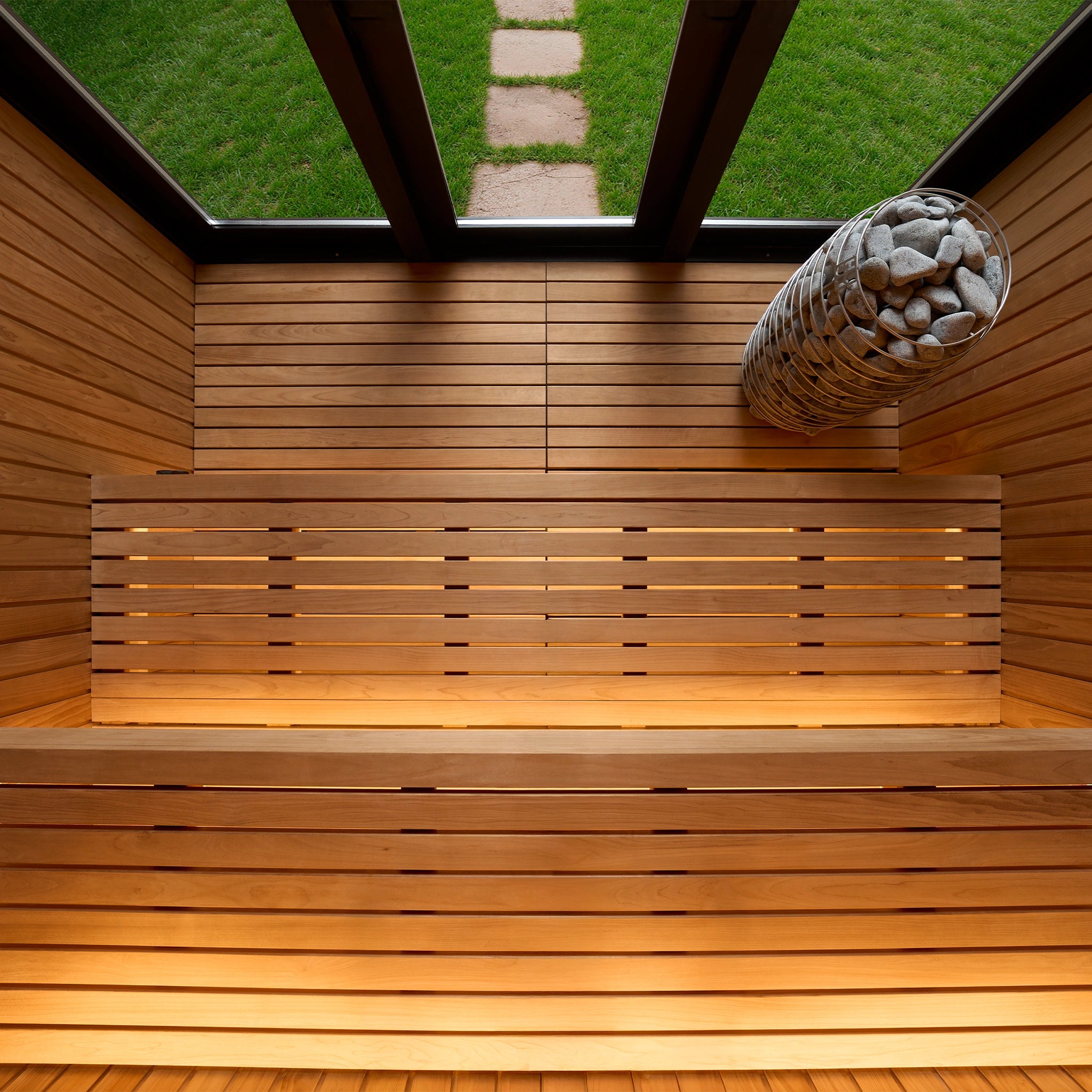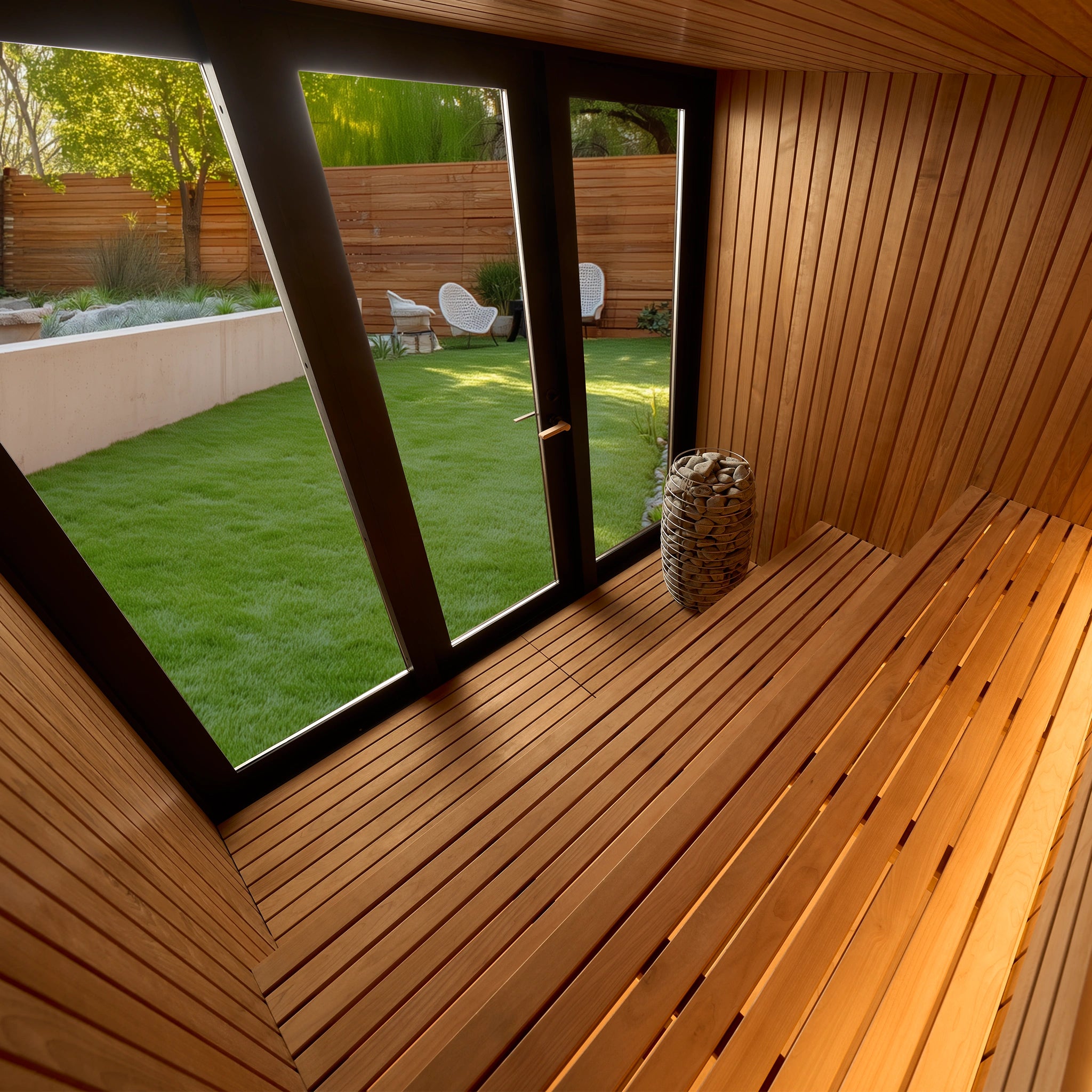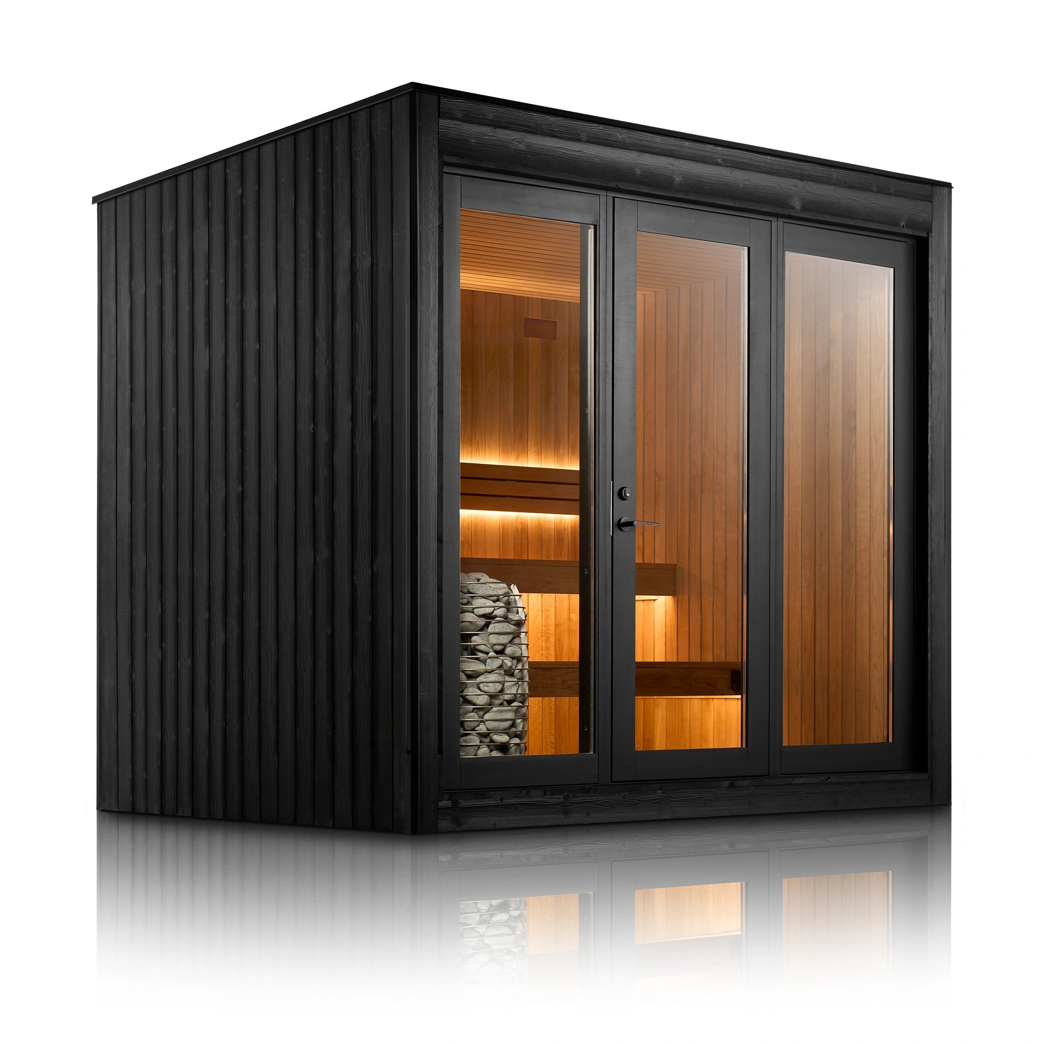 Elysian Modern Outdoor Sauna is a refined, architectural outdoor sauna designed for year-round ritual. A calm Thermo-Aspen interior meets a bold black exterior, creating a modern sanctuary rooted in Finnish sauna principles. Spacious proportions, ergonomic two-tier benching, and integrated RGBW mood lighting transform heat into a deeply restorative experience—beautiful, durable, and purpose-built for outdoor living.