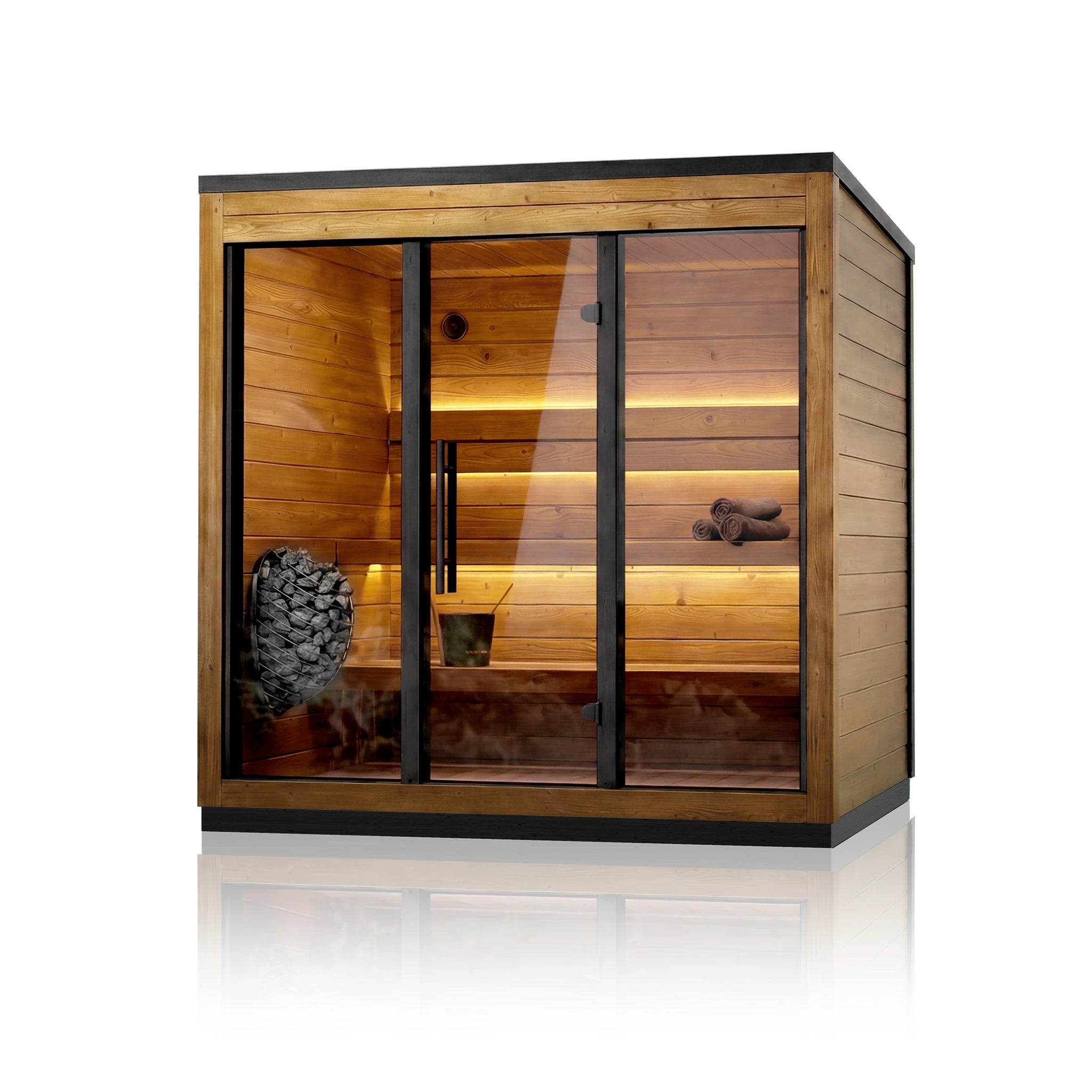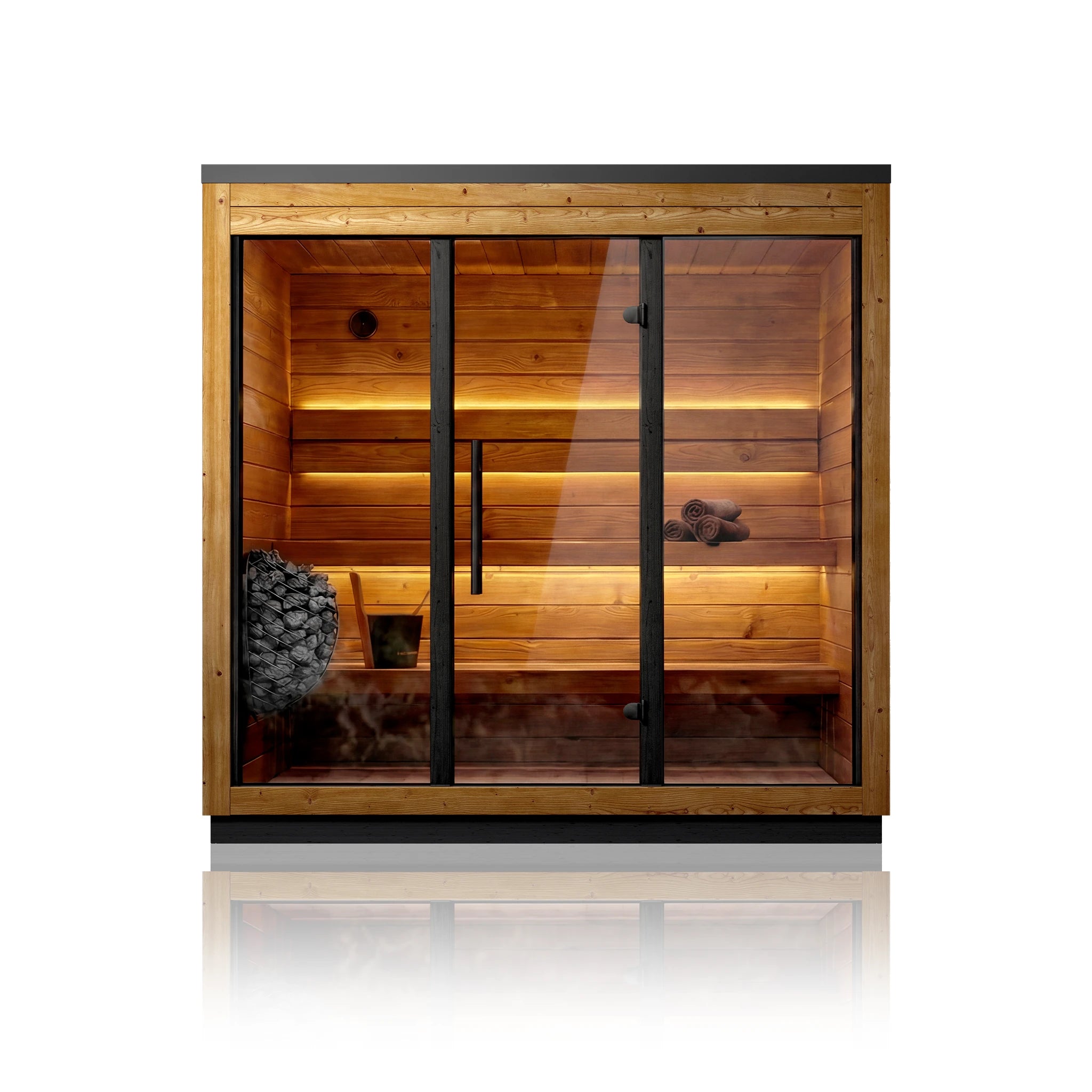 Scandinavian Halo 3-Person Outdoor Cabin Sauna (7x5) is a clean, modern outdoor sauna designed for efficient heat, bright natural light, and a simple installation-ready build. Featuring a full glass front (glass door + matching glass panels), Scandinavian Halo 3-Person Outdoor Cabin Sauna (7x5) creates an open, airy feel while maintaining a compact footprint that fits beautifully into patios, decks, and backyard wellness zones.