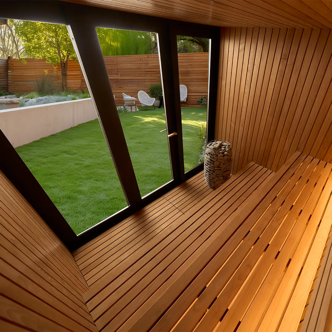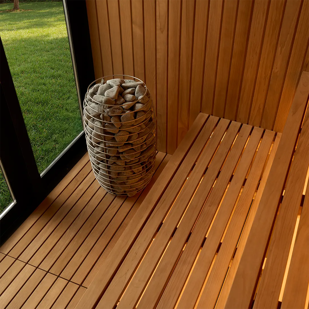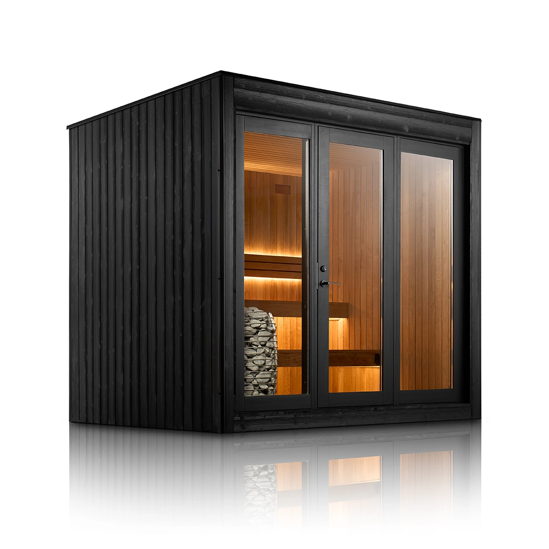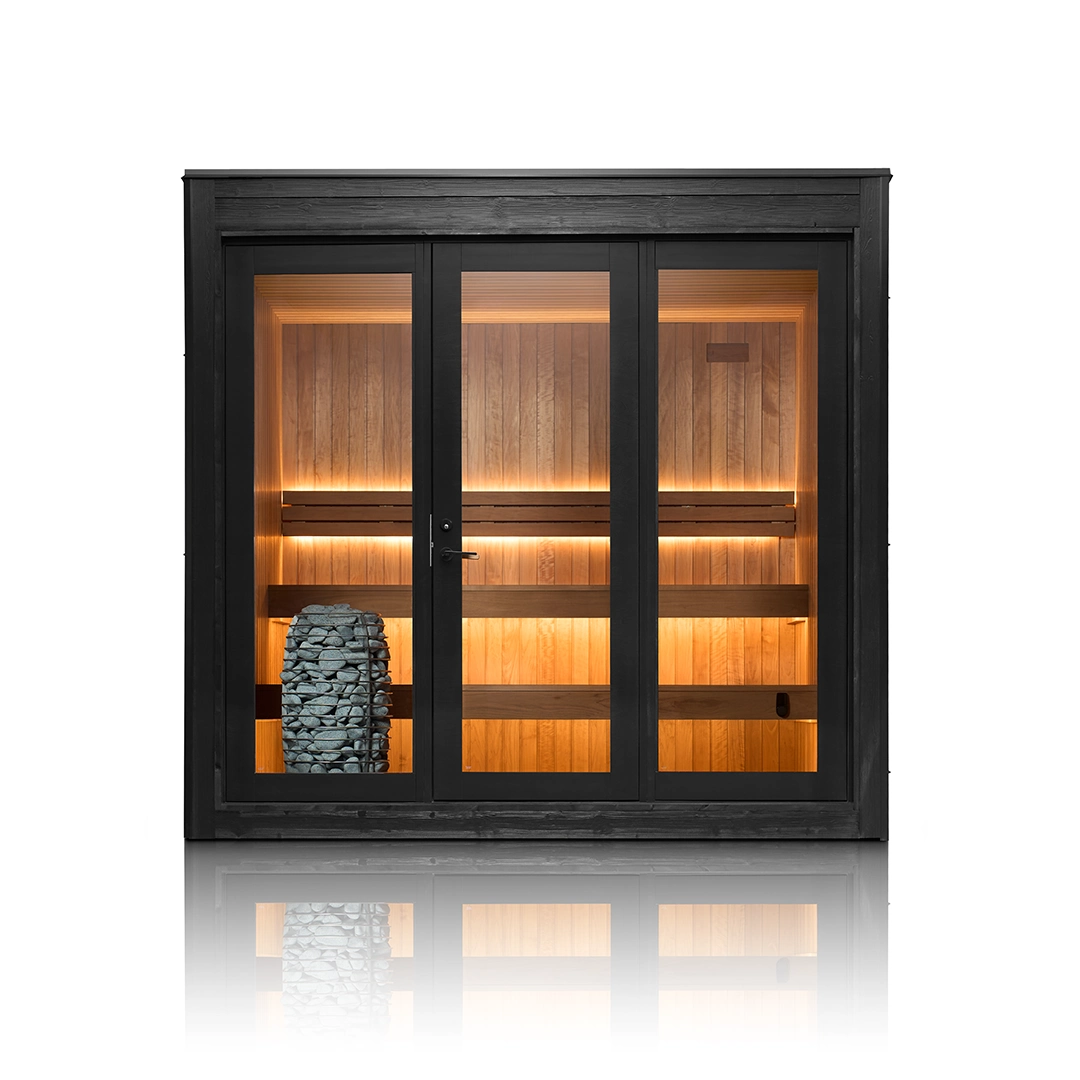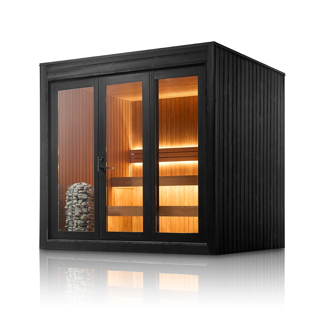 Elysian Modern Outdoor Sauna is a refined, architectural outdoor sauna designed for year-round ritual. A calm Thermo-Aspen interior meets a bold black exterior, creating a modern sanctuary rooted in Finnish sauna principles. Spacious proportions, ergonomic two-tier benching, and integrated RGBW mood lighting transform heat into a deeply restorative experience—beautiful, durable, and purpose-built for outdoor living.