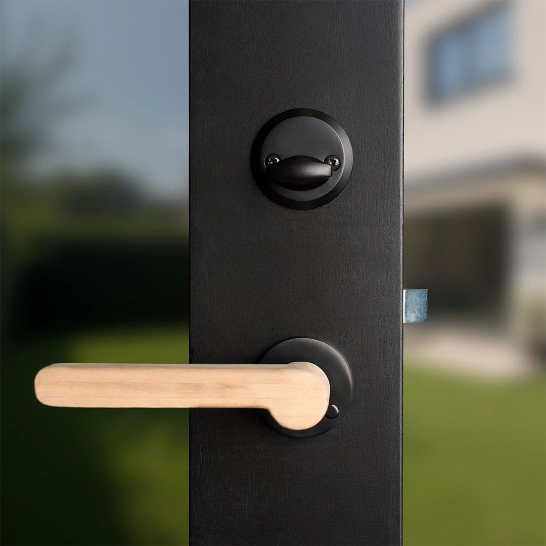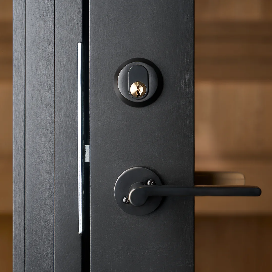 - Premium escape door: lockable, black finish (RAL 9005), wooden interior handle cover